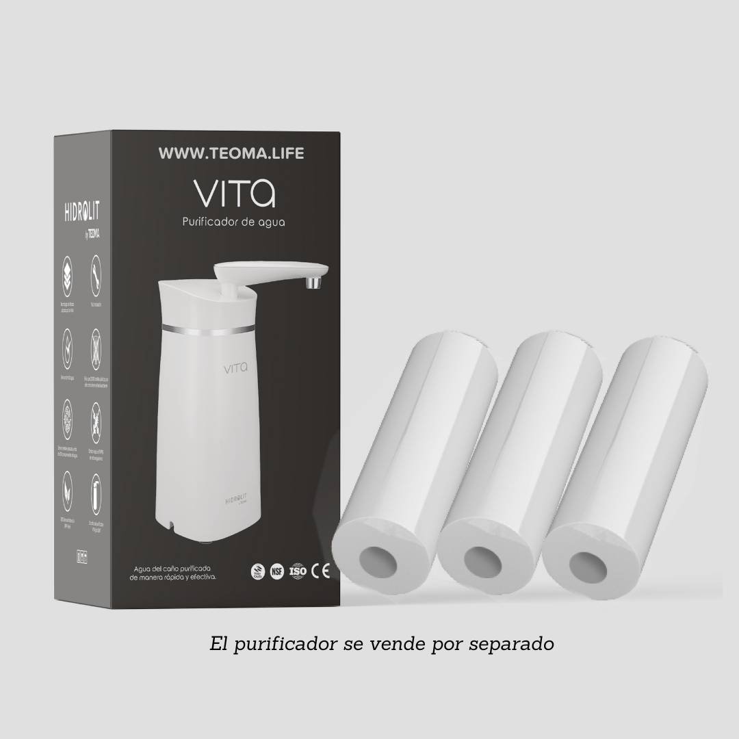 Hidrolit VITA by Teoma te trae el Purificador de Agua para el hogar. Los Pre Filtros es una parte importante del purificador y se aconseja cambiarlos cada 4 o 5 semanas, siempre dependiendo de la calidade de agua y el consumo diario.